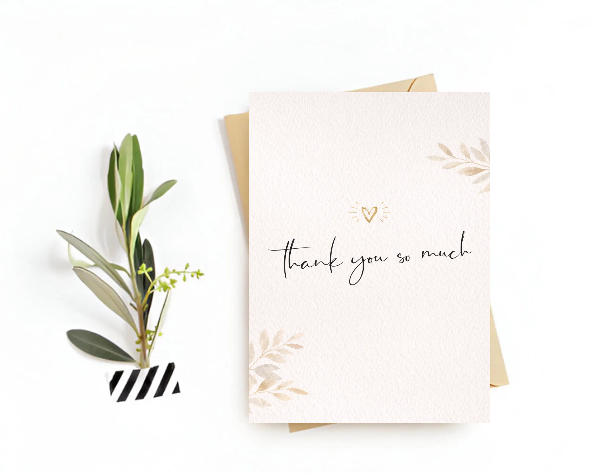 Thank You Card – “Thank You so much” Postcard with Heart & Flowers